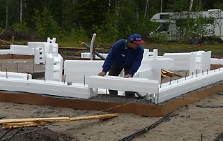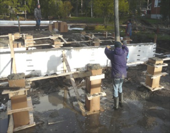 On käytetty -25 asteeseen saakka. Vastavalettu betoni ei jäädy lämpöeristetyn valumuotin sisällä. Kun kantava betonirakenne on kovettunut, toimii paikoilleenjäävä muotti valmiin rakenteen ylivoimaisena lämmöneristeenä. Lämmöneristettä ei tarvitse poistaa valun jäkeen, kylmhän talosta silloin tulisi.